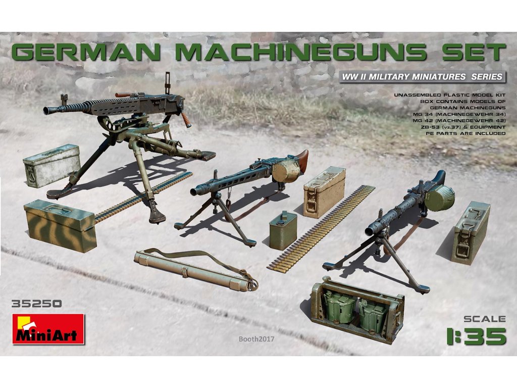 German Machineguns Set in 1/35th scale contains detailed WWII German machine guns including accessories, tripods and magazines. A great addition to infantry units and frontline dioramas. Package does not include paint or glue needed for assembly.