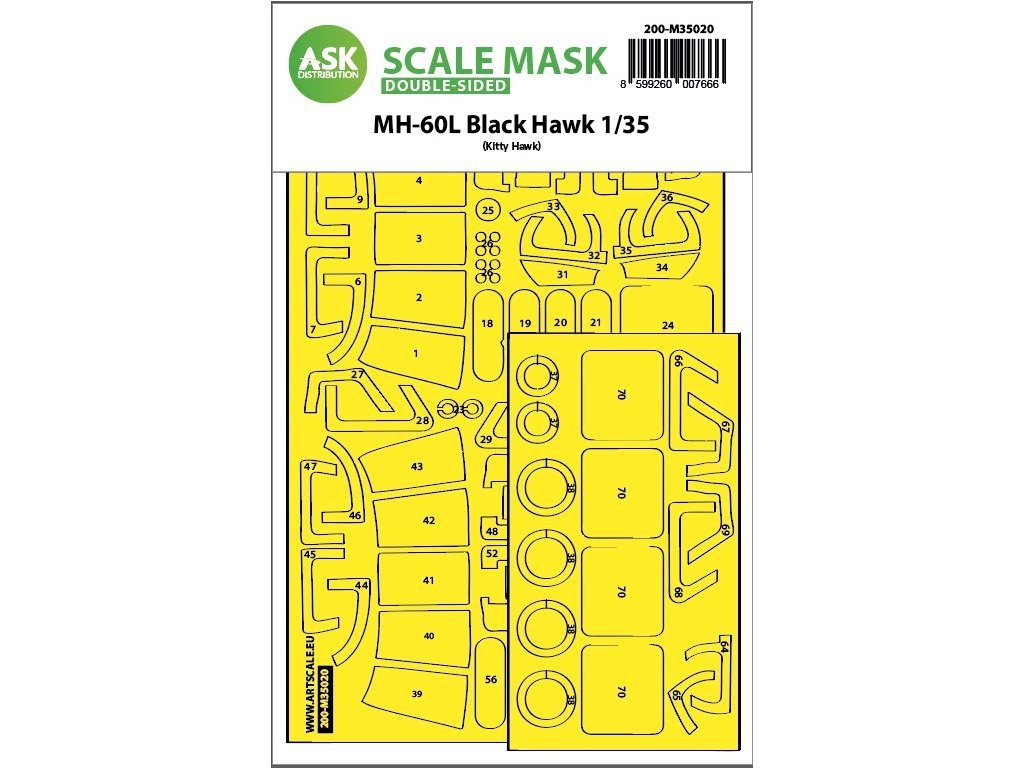 1/35 MH-60L Black Hawk reversible fit express mask for Kitty Hawk kit. Catalog number 200-M35020