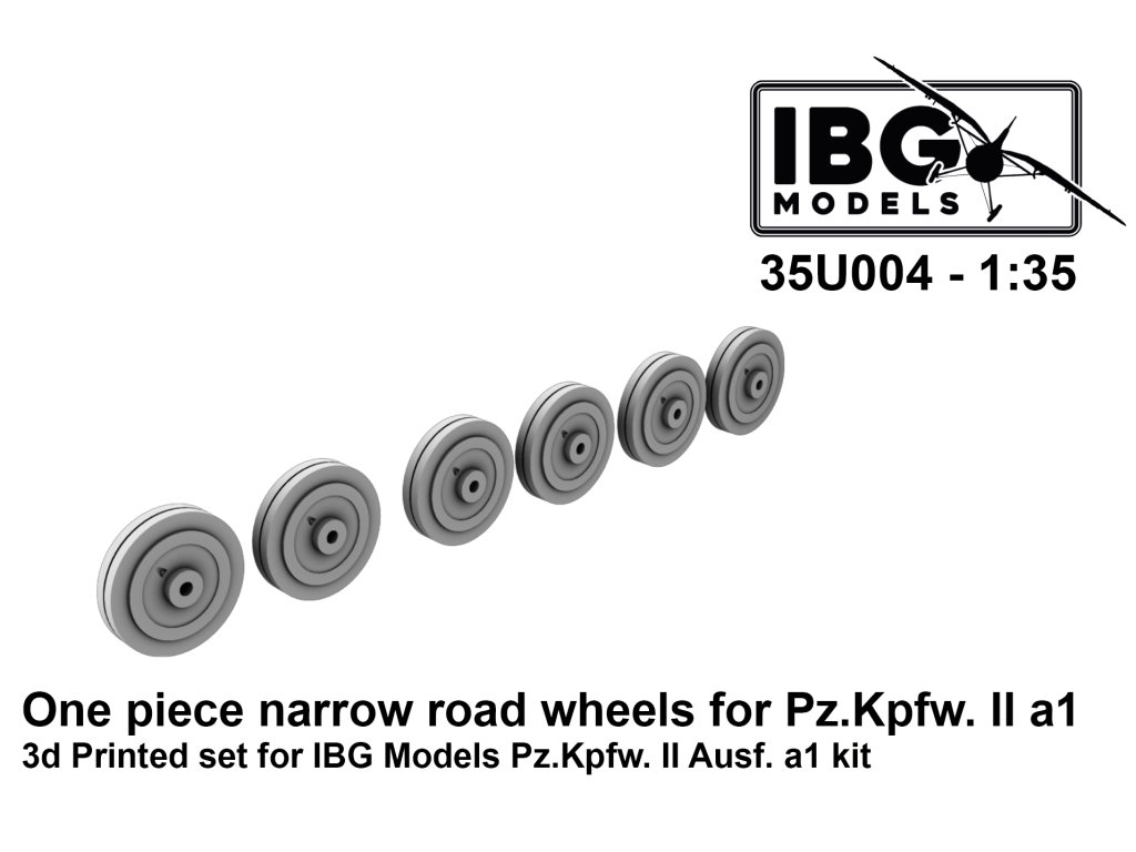 IBG 1/35 One piece narrow road wheels for Pz.Kpfw. II Ausf. a1 is a detailed set of one piece narrow road wheels, designed for Panzer II Ausf. a1 tank models. The package does not include paint or glue needed for assembly.