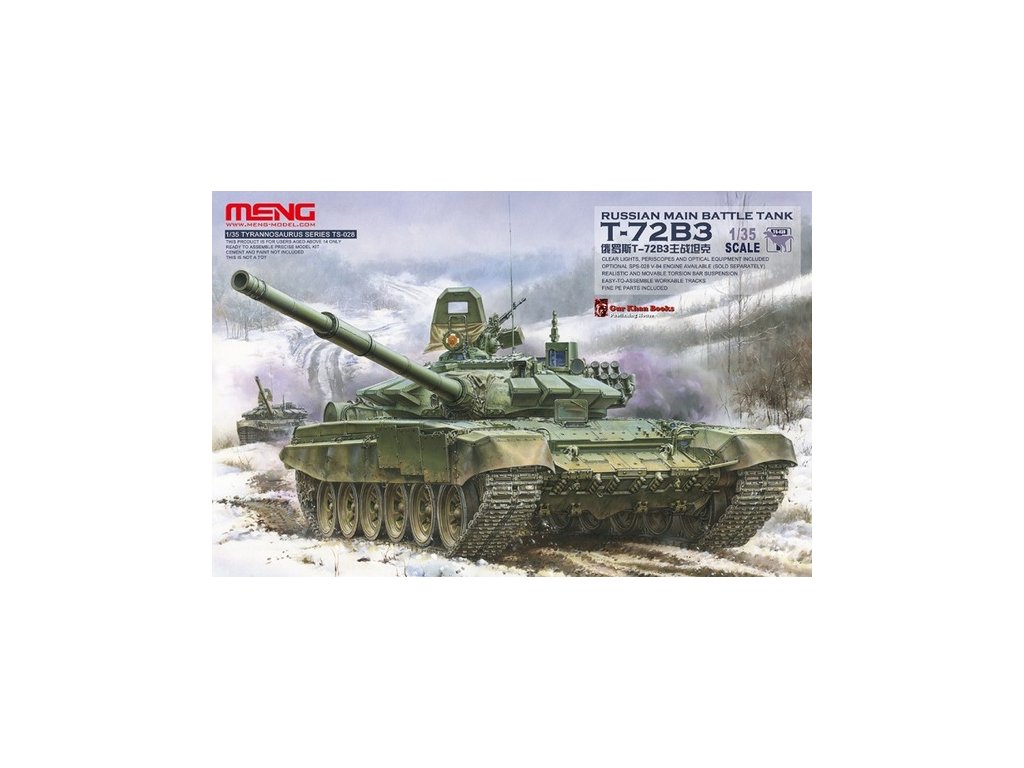 Meng 1/35 Russian Main Battle Tank T-72B3 is a 1/35th scale plastic model construction kit of the modern Russian main battle tank. This version is an upgrade of the proven T-72, introduced into service in 2010, and represents the standard tank of the Russian Army.