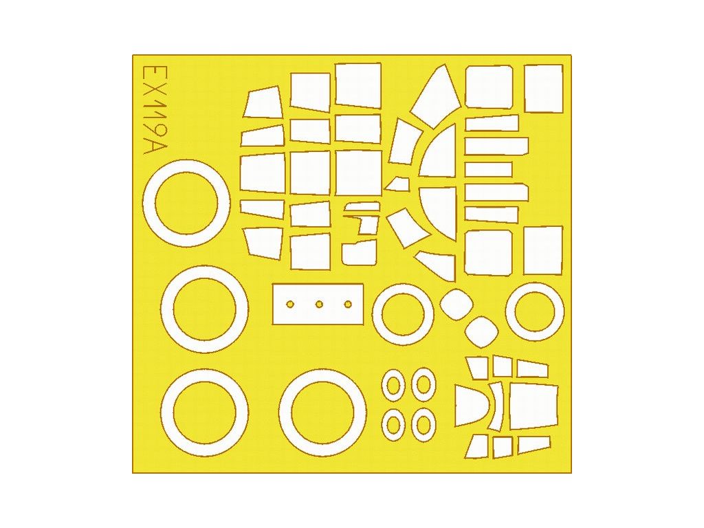 1/48 Spitfire Tr.9 single-sided self-adhesive fit mask of clear parts and wheel masks for Eduard kit. Catalog number 200-M48321