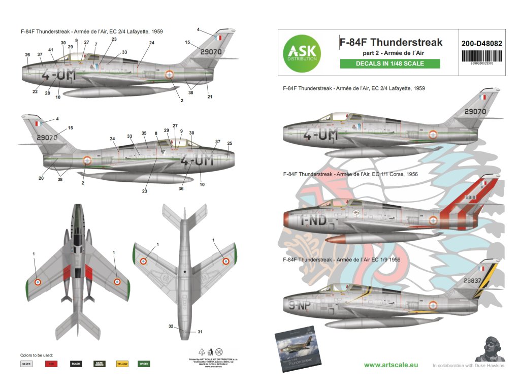 1/48 F-84F Thunderstreak part 2 - Armée de lˇAir / Belgian Air Force. Catalog Number 200-D48081