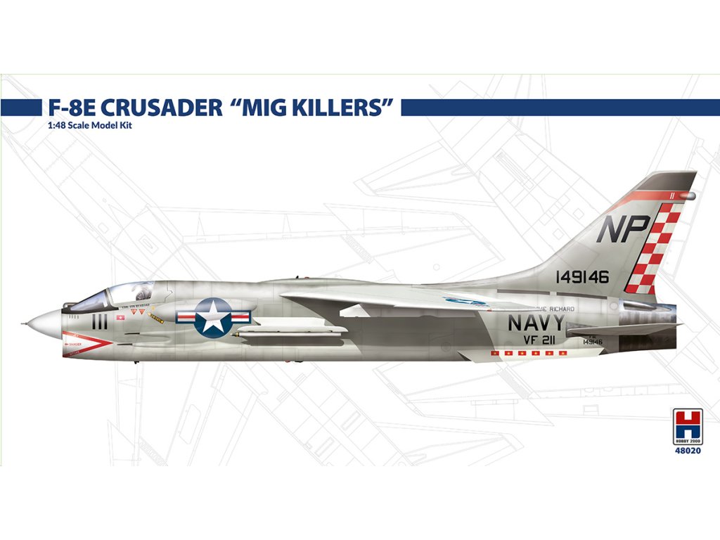 Hobby 2000 1/48 F-8E Crusader "MiG Killers" is an American fighter aircraft from the Vietnam War period, famous for its success against MiGs. The kit includes Hasegawa plastic parts, Cartograf decals and precision paint masks. Package does not include paint or glue needed for assembly.