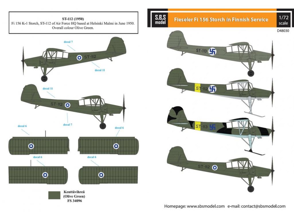 1/72 Fieseler Fi 156C Storch part 2 - Around WWII Europe and Foreign services. Catalog Number 200-D72040 Decal sheet.
