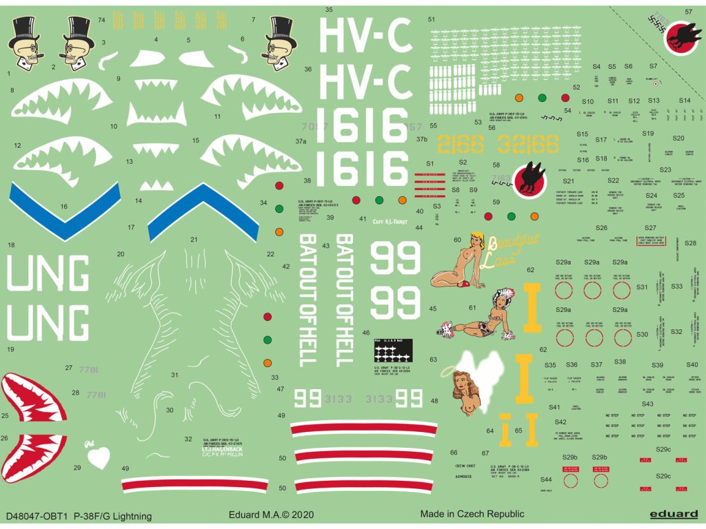 1/32 North American B-25J Mitchell - stencils Decal sheet contain stencils for two plastic kits of B-25J Michtell. Item no. 200-D32026