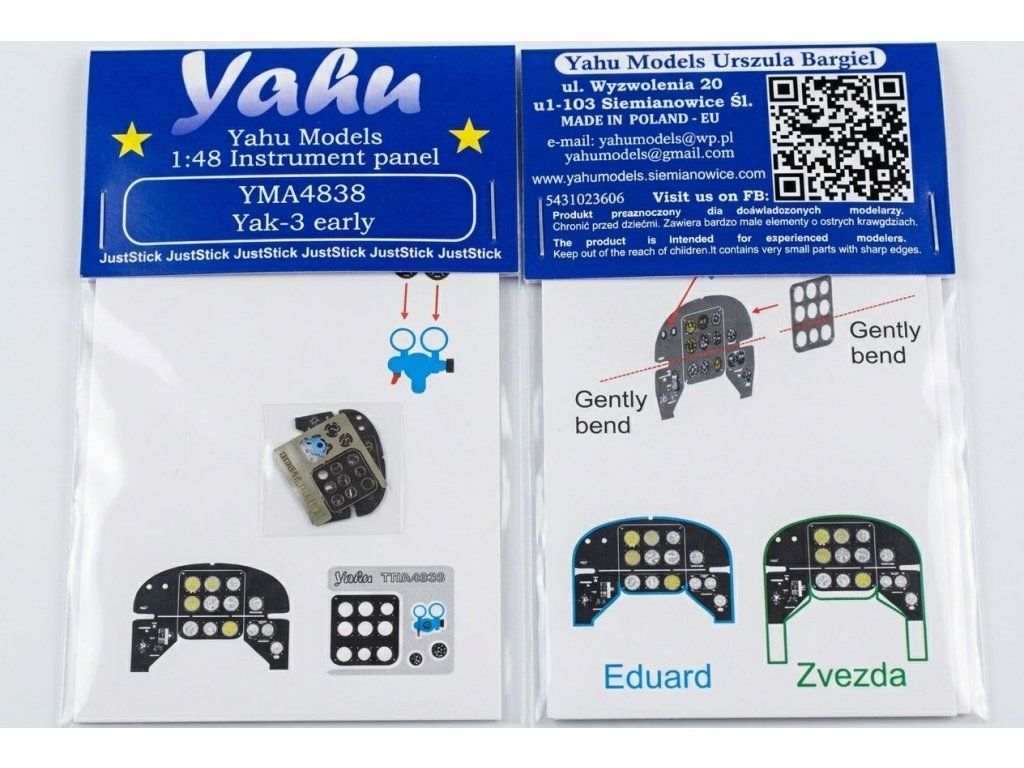 Yahu Model YMA4838 is an etched dashboard designed for early versions of the Soviet Yakovlev Yak-3 fighter aircraft in 1:48 scale, specifically designed for use with Eduard and Zvezda kits. The panel is made by photo-etching method and has a colour print that faithfully reproduces the appearance of the instruments, dials and cockpit controls. The combination of etched relief and colour printing gives the model a significantly higher level of detail than standard plastic parts.