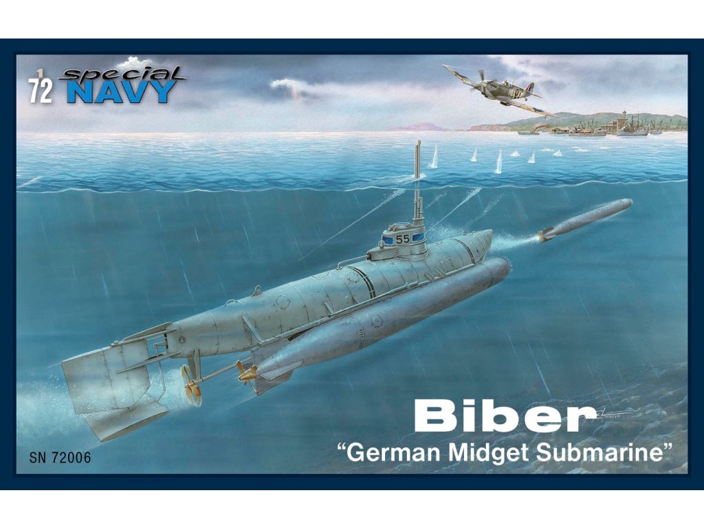 Special Hobby 's 1/72nd scale Biber "German Midget Submarine" kit offers modelers the opportunity to build a faithful replica of this mini-submarine. The package includes plastic parts with a precision crafted hull, conning tower, periscope and torpedo hinges.