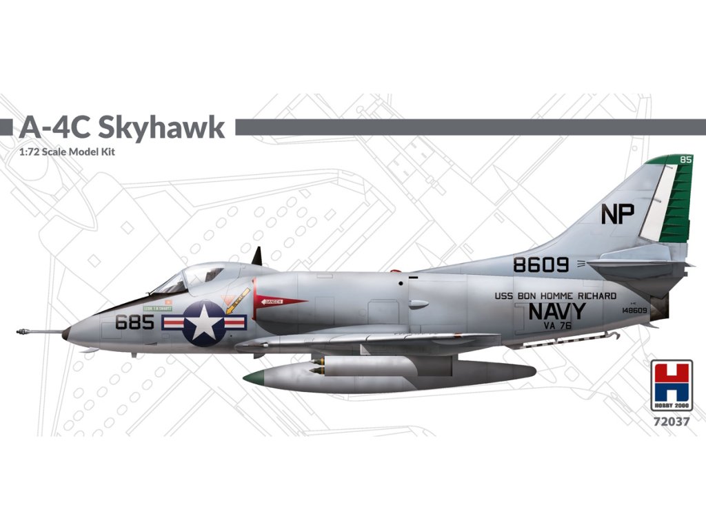 H2K 1/72 Douglas A-4C Skyhawk is a detailed model of the American light attack aircraft that served in various conflicts during the 1960s. Assembled from Hasegawa parts and complete with high quality Cartograf decals. Package does not include paint or glue needed for assembly.
