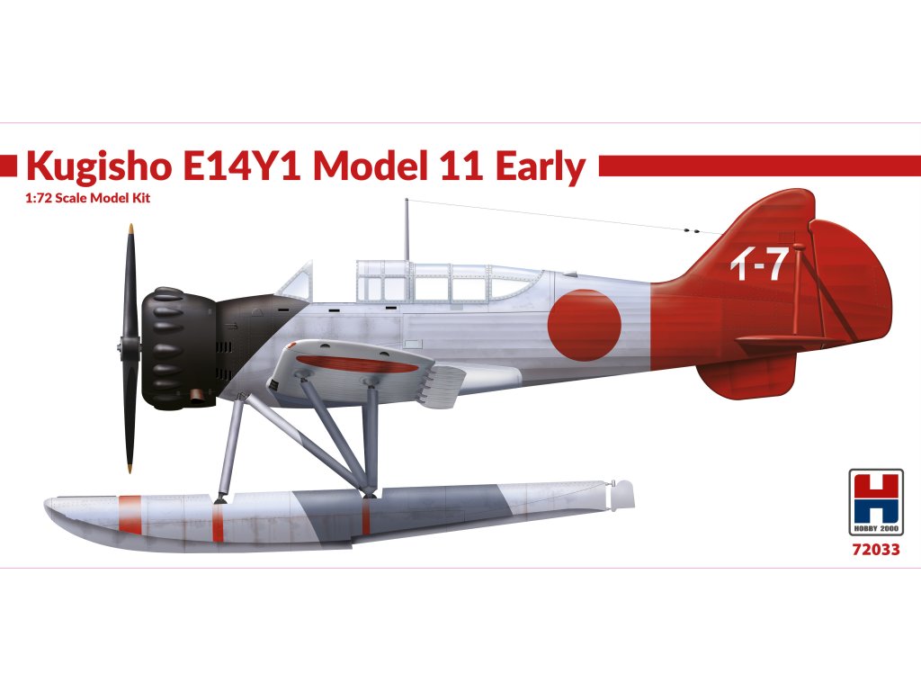 Hobby 2000 1/72 E14Y1 Model 11 Early is a WWII era Japanese deck reconnaissance seaplane designed for operations from I-15 class submarines. The early version of the Model 11 was deployed beginning in 1941 and was used for long-range reconnaissance and special missions. The package does not include the paint or adhesives needed for assembly.