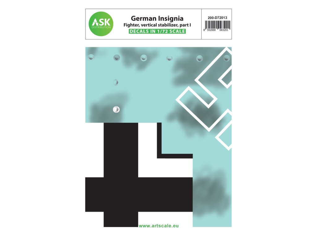 1/72 German Insignia Fighter aircraft 1937-1945 part I - vertical stabilizer. Plastic kit not included. Contains over 450 pairs of historical aeronautical insignia indicating nationality/affiliation of the second war period.