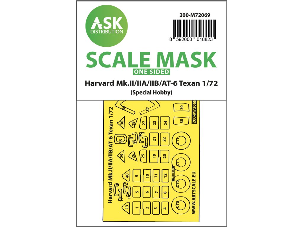 Art Scale Kit Distribution (ASK) produces pre-cut and numbered masking sheets for plastic models. The masks are designed primarily for masking cabins and wheels, but also make it easier to mask other parts of the model. Each kit is recommended for a specific model kit in the appropriate scale, ensuring maximum accuracy and ease of use.