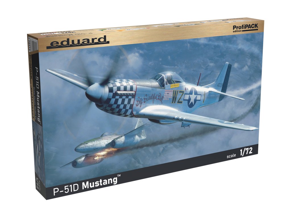 Eduard P-51D Mustang in 1/72 scale is a kit of American WWII fighter aircraft, made in ProfiPACK edition with detailedplastic parts, colour etched accessories, masks and decals for six camouflage schemes. The package does not include the paint or glue needed for assembly.