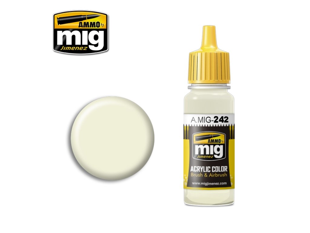 Acrylic paint to be use in combination with other tones of the same color range to obtain the modulation effect, interesting light effects, and volume effects with our models base colors. This paint has been formulated for maximum brush & airbrush performance - 17ml. Water soluble, odorless, and non-toxic. Shake thoroughly before each use. We recommend A.MIG-2000 Acrylic Thinner for thinning. Dries completely in 24 hours.