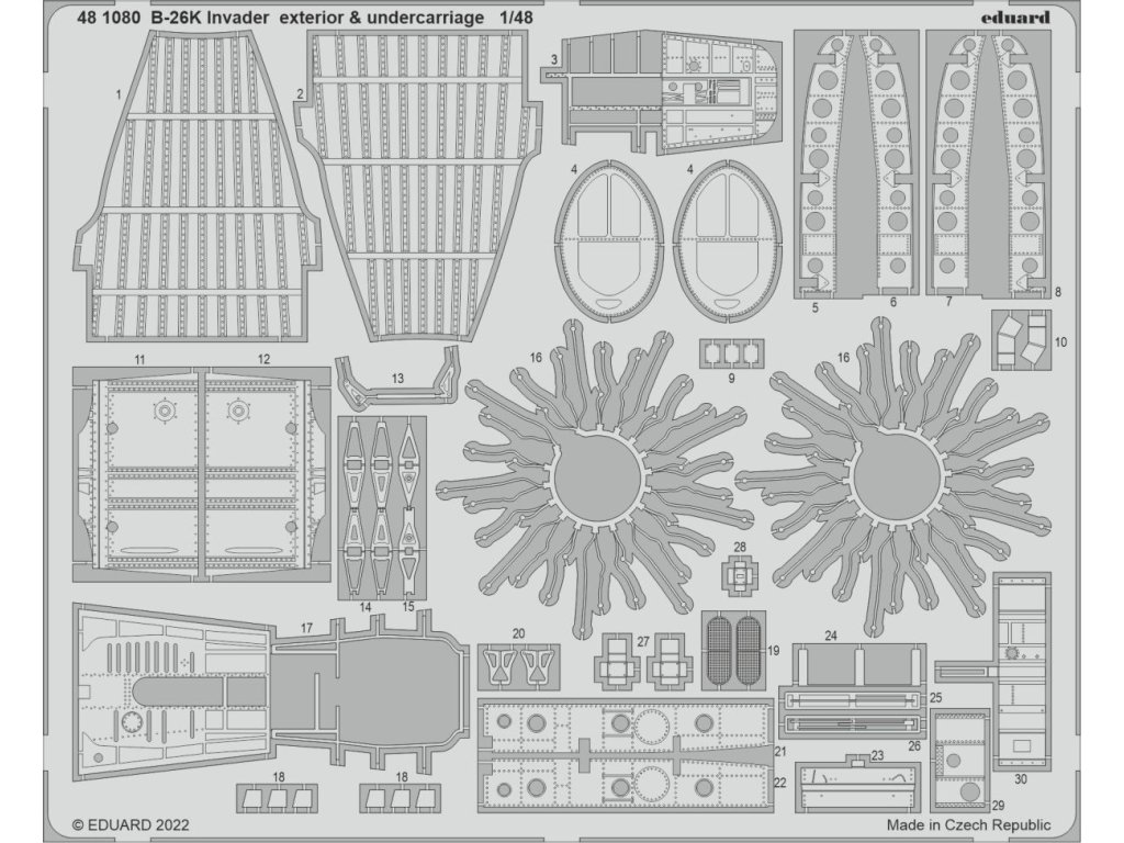 1/48 B-26K Counter Invader double-sided self-adhesive fit mask of clear parts and undercarriage wheels for ICM kit. Catalog number ASK...