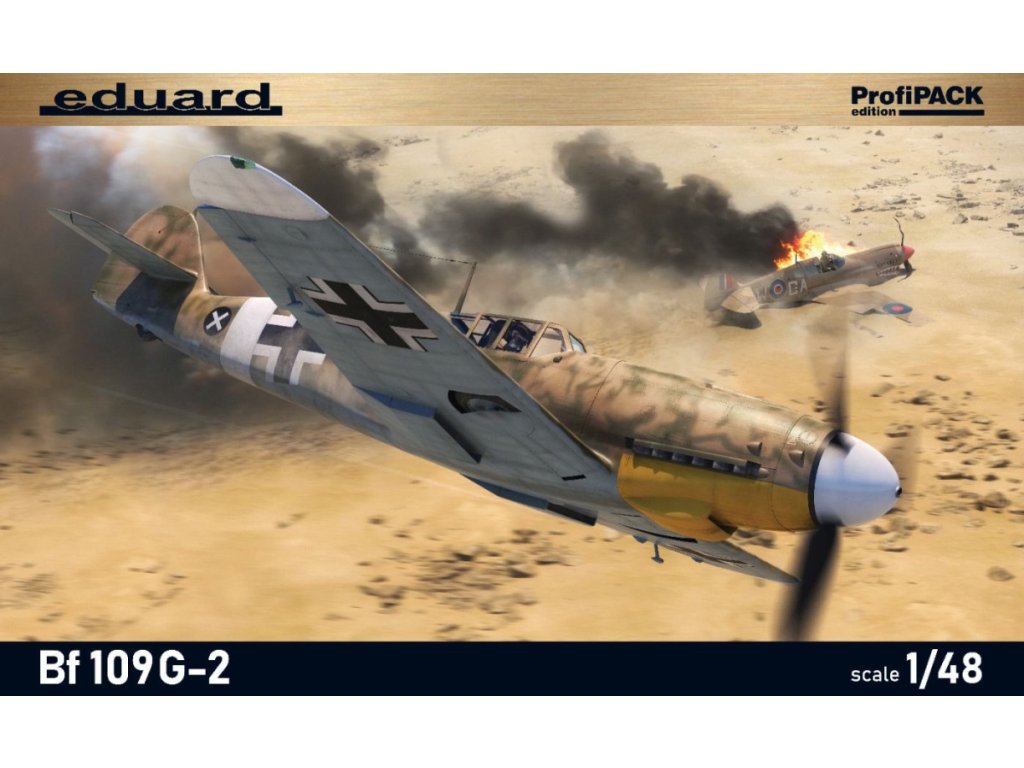 Eduard Bf 109G-2 1/48 is a kit of German WWII fighter aircraft, made by ProfiPACK edition with detailed plastic parts, colour etched accessories, masks and decals for five camouflage schemes. The package does not include the paint or glue needed for assembly.