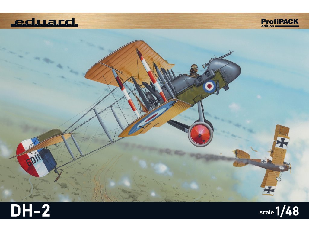 Eduard DH-2 1/48 is a kit of British WWI fighter biplane, made by ProfiPACK edition with detailed plastic parts, colour etched accessories, masks and decals for four camouflage schemes. The package does not include the paint or glue needed for assembly.