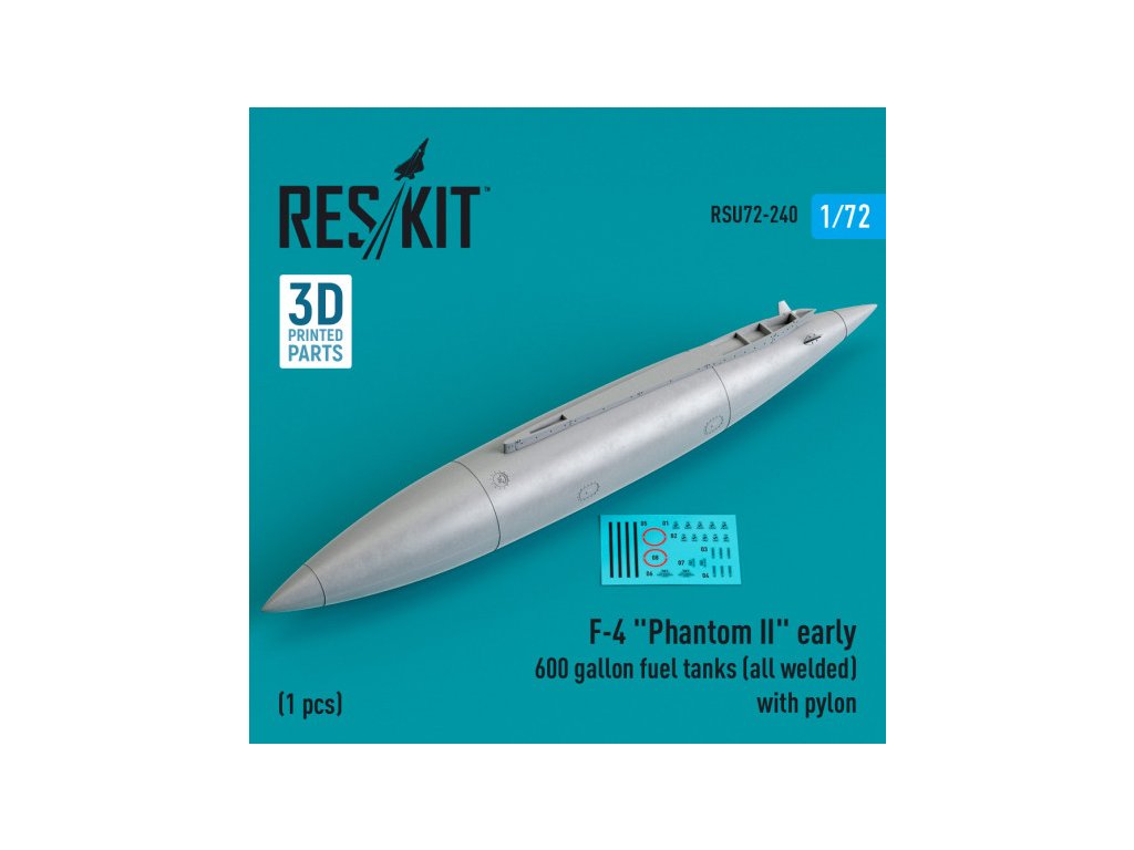 F-4 "Phantom II" early 600 gallon fuel tanks (all welded) with pylon (1 pcs) (3D Printed) (1/72)