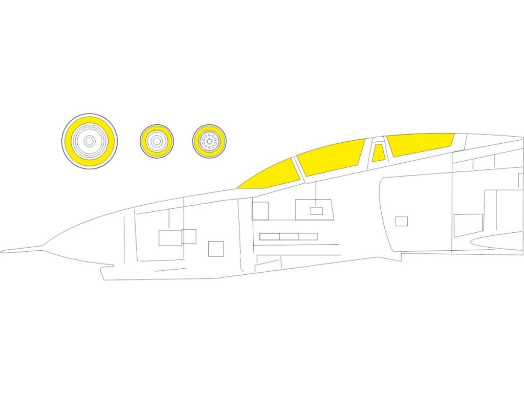 1/48 F-16A single-sided self-adhesive clear parts mask and wheel masks for Kinetic kit, catalog number 200-M48110. Pre-cut Kabuki masking film of...