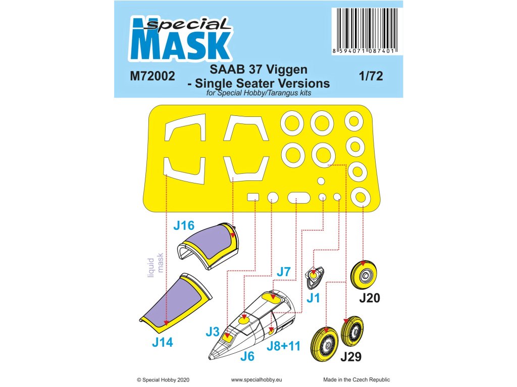 This set of 1/72nd scale camouflage stencils for SAAB 37 Viggen Single Seater by Special Hobby allows you to precisely mask the cockpit and other transparent parts of the model during painting. The templates precisely match the shapes of the glass, making paint application easier and ensuring sharp paint lines. Made of high quality material that is easy to apply and remove. The package does not contain paint or adhesives needed for assembly.