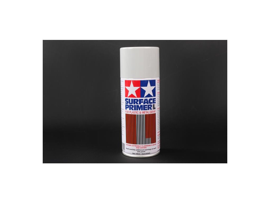 This gray surface primer provides a sturdy undercoat to mask the color of the material underneath, and decreases topcoat peeling. It is great for use finishing modifications or repairs to your model.