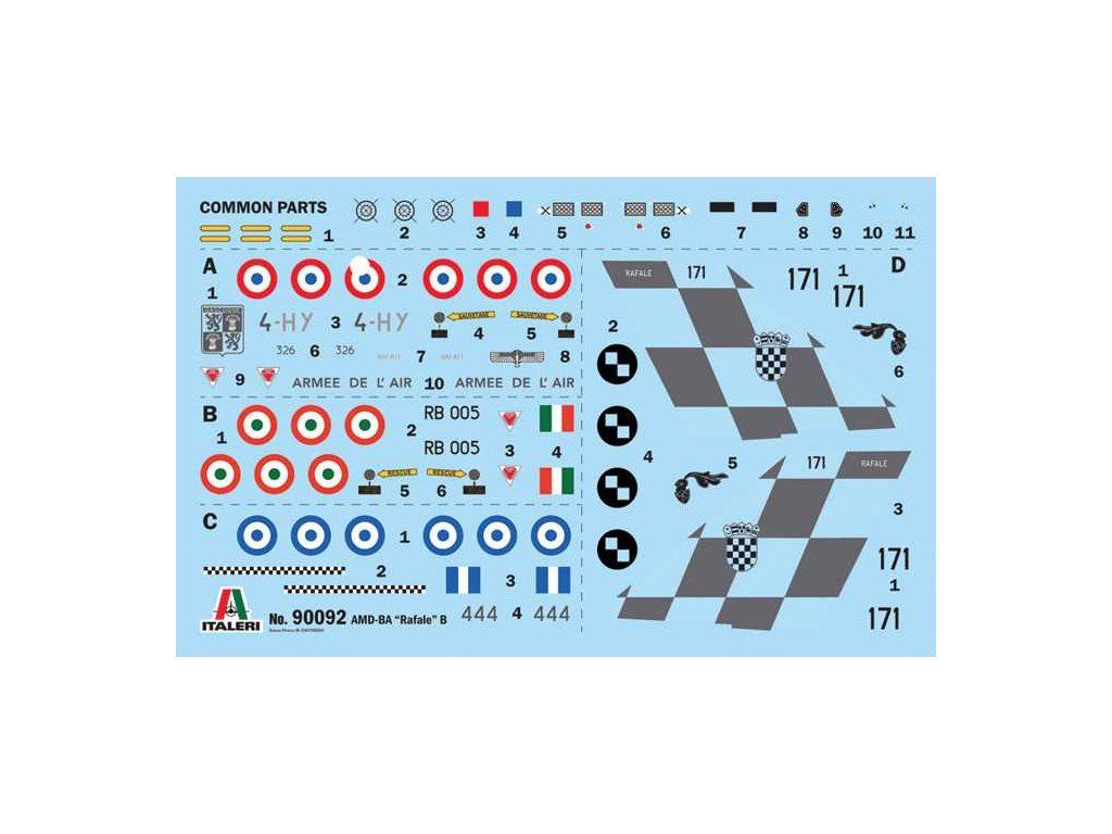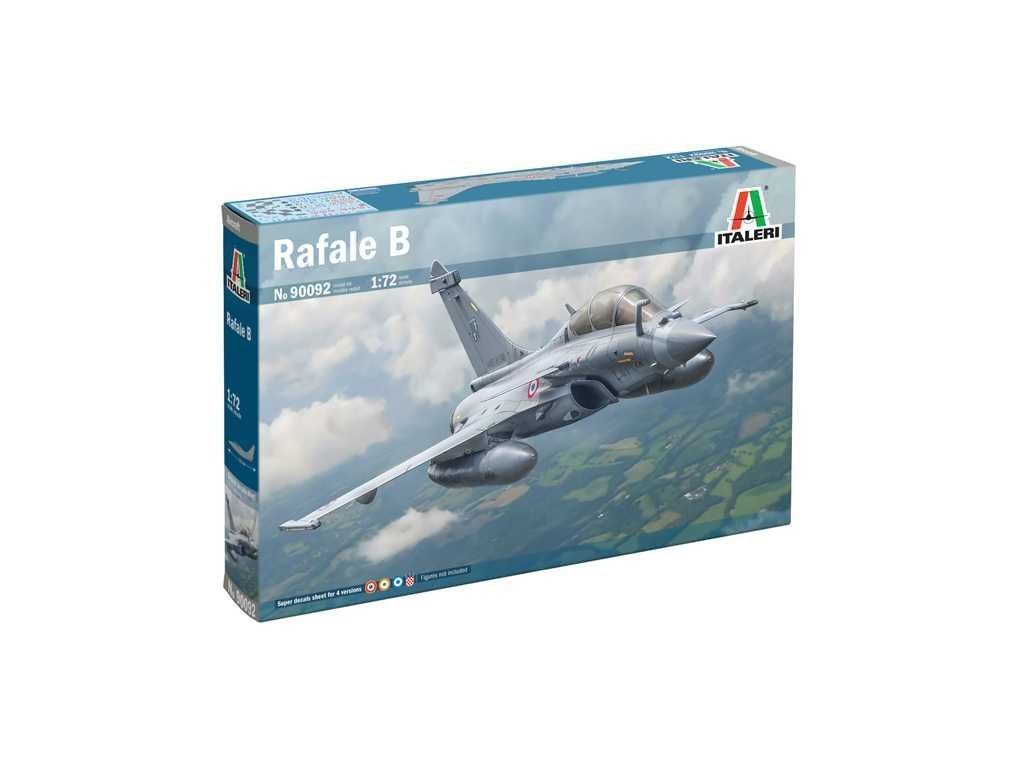Italeri 90092 - Rafale B (1:72) je plastikový model francouzského víceúčelového stíhacího letounu určený ke slepení. Stavebnice obsahuje obtisky pro 4 verze a barevný návod. Měřítko 1:72 umožňuje postavit detailní model v praktické velikosti (délka 21,2 cm). Obtížnost 3, doporučeno od 14 let. Balení neobsahuje barvy ani lepidla potřebné k sestavení.