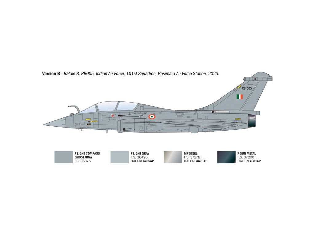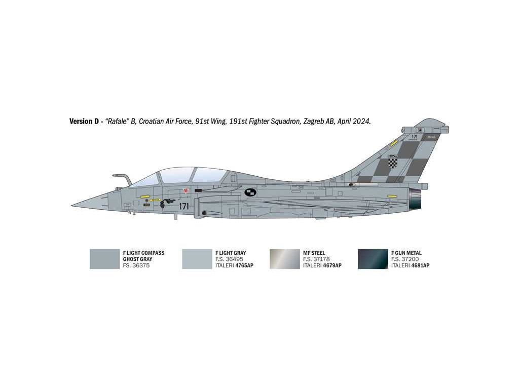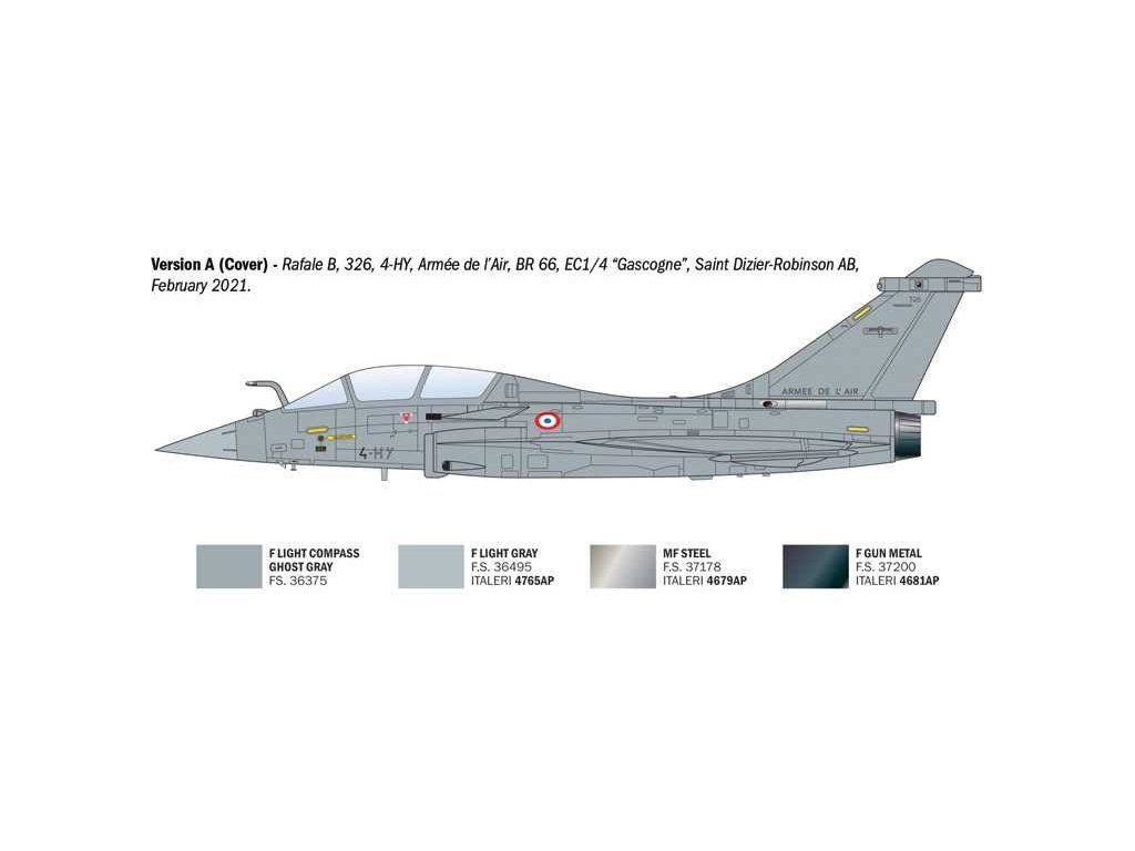 Dassault Rafale je francouzský víceúčelový stíhací letoun čtvrté generace, který představuje jeden z nejmodernějších a nejuniverzálnějších bojových letounů současnosti. Vývoj začal v 80. letech 20. století jako reakce na potřebu nahradit stárnoucí flotilu různých typů letadel jedním jednotným strojem schopným plnit široké spektrum úkolů – od vzdušné nadvlády přes útok na pozemní cíle až po průzkum a jaderné odstrašování. Rafale vstoupil do operační služby v roce 2001 a postupně se stal páteří francouzského letectva i námořnictva. Verze B je dvoumístná varianta určená především pro Armée de l'Air (francouzské letectvo), kde druhý člen posádky zajišťuje obsluhu pokročilých systémů během složitých misí. V praxi se Rafale osvědčil v řadě konfliktů včetně operací v Afghánistánu, Libyi, Mali, Sýrii a Iráku, kde prokázal svou všestrannost a spolehlivost.
