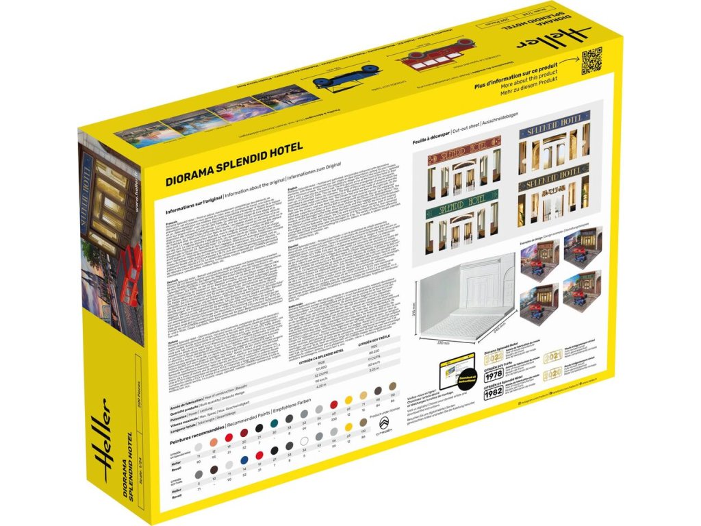 Heller 1/24 Starter Kit Diorama Splendid Hotel to kompletna podstawa do stworzenia realistycznej dioramy miejskiej. Diorama zawiera szczegółową fasadę hotelu Splendid z elementami architektonicznymi, chodnikiem i elementami ulicy, które pozwalają na osadzenie całej sceny w historycznym lub nowoczesnym otoczeniu.