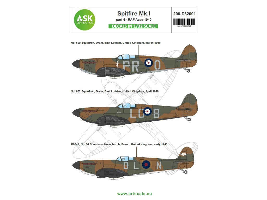Maska odwracalna 1/32 Supermarine Spitfire Mk.Ia do zestawu Kotare. Numer katalogowy 200-M32064. Doskonała jakość, najlepszy technologicznie...