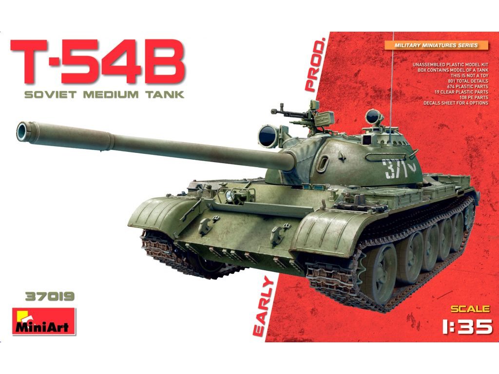 MiniArt 1/35 T-54B (Early Production) oferuje bardzo szczegółowy zestaw z realistycznymi powierzchniami części, dokładnym odwzorowaniem wieży i kadłuba.renderowanie wieży i kadłuba oraz wiele drobnych detali, które odzwierciedlają wczesne warianty produkcyjne tego czołgu. Zestaw zawiera również części fototrawione i kalkomanie dla wielu wersji. Jego kunszt sprawia, że model ten jest odpowiedni dla bardziej doświadczonych modelarzy, którzy chcą stworzyć autentyczną zimnowojenną lub powojenną scenę.