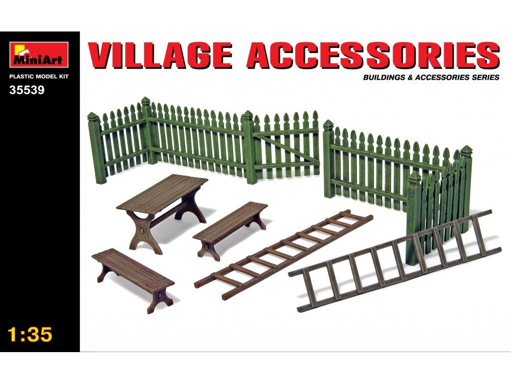 Village Accessories 1/35 to zestaw szczegółowych akcesoriów wiejskich odpowiednich do ożywienia XX-wiecznych dioram o tematyce cywilnej lub wojskowej. Zestaw nie zawiera farb ani kleju potrzebnych do montażu.