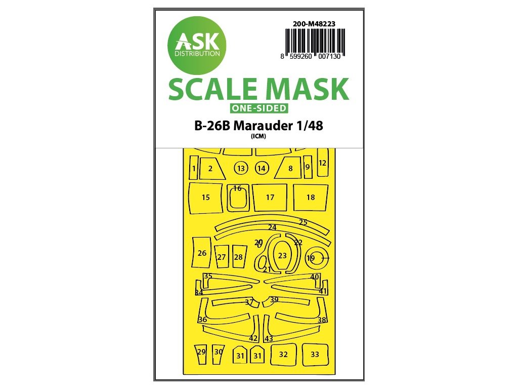 1/48 B-26B Marauder jednostronna samoprzylepna maska przezroczysta do zestawu ICM. Numer katalogowy ASK Distribution: 200-M48223