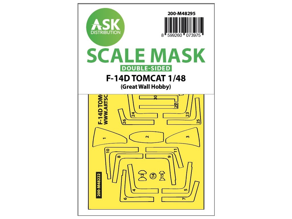 1/48 F-14D Tomcat dwustronna samoprzylepna maska pasowana z przezroczystymi częściami i kołami do zestawu Great Wall Hobby. Numer katalogowy ASK Distribution: 200-M48295