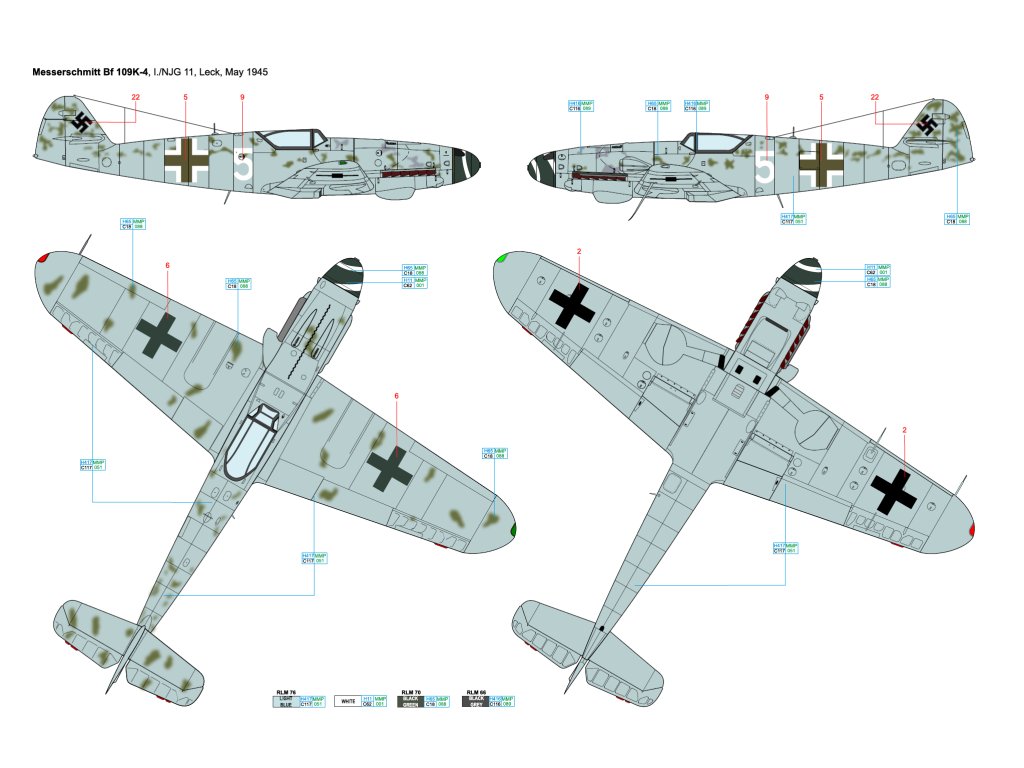 - Messerschmitt Bf 109K-4, I./NJG 11, Leck, maj 1945 r.