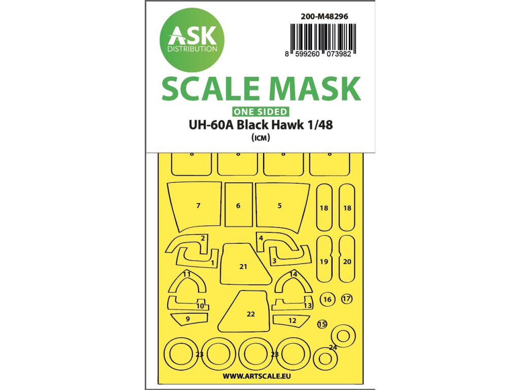 1/48 UH-60A Black Hawk jednostronna maska ekspresowa do zestawu ICM, najwyższej jakości folia maskująca Kabuki, najlepszy technologicznie przekrój folii. ASK nr 200-M48296