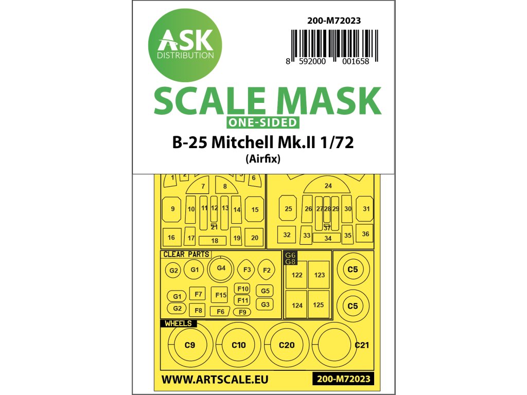 1/72 B-25 Mitchell Mk.II jednostronna maska do zestawu Airfix, folia maskująca Kabuki, najwyższa jakość, najlepsze technologicznie wykonanie przekroju folii.