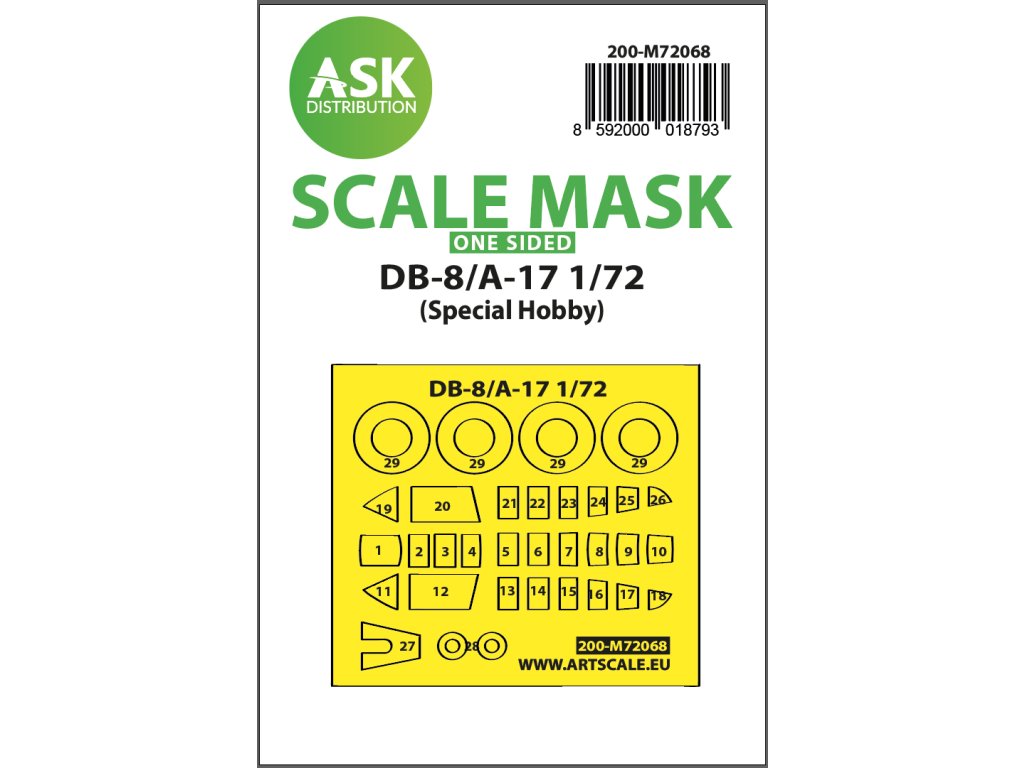 Art Scale Kit Distribution (ASK) produkuje wstępnie wycięte i ponumerowane arkusze maskujące do modeli plastikowych. Maski są przeznaczone głównie do maskowania kabin i kół, ale ułatwiają również maskowanie innych części modelu. Każdy zestaw jest zalecany dla konkretnego zestawu modelu w odpowiedniej skali, zapewniając maksymalną dokładność i łatwość użycia.