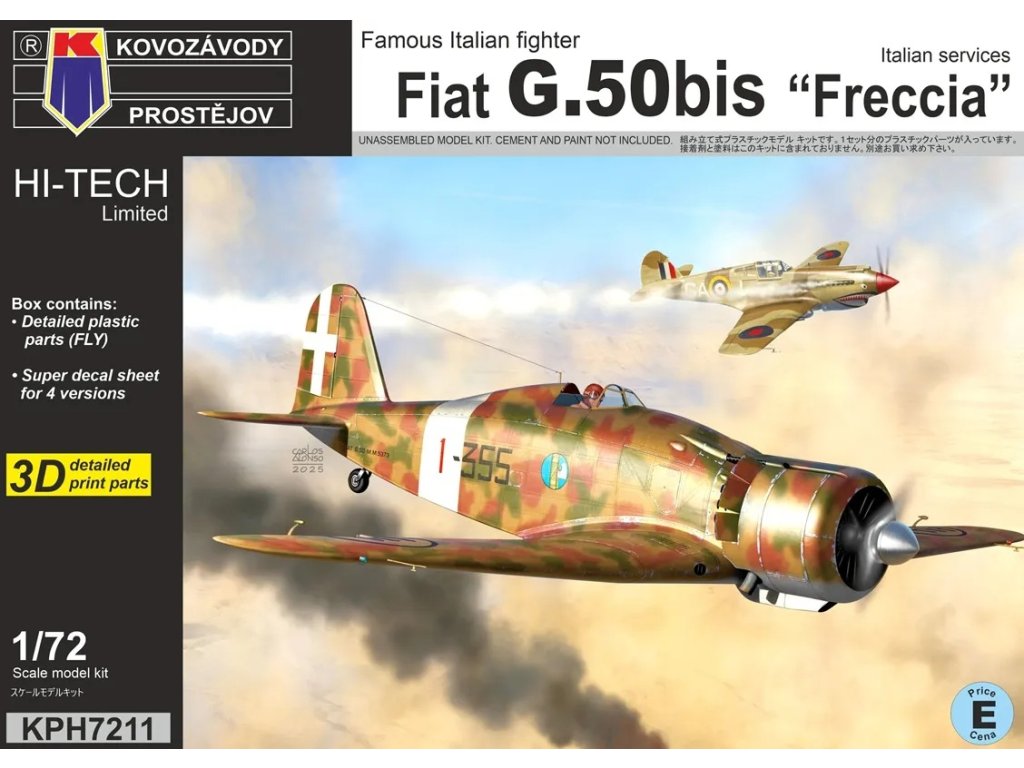 Fiat G.50bis "Freccia" Italian Services w skali 1/72 to zestaw włoskiego myśliwca z okresu II wojny światowej, używanego głównie na Morzu Śródziemnym i Bałkanach, od Kovozávod Prostějov. Zestaw nie zawiera farb ani kleju potrzebnych do montażu.