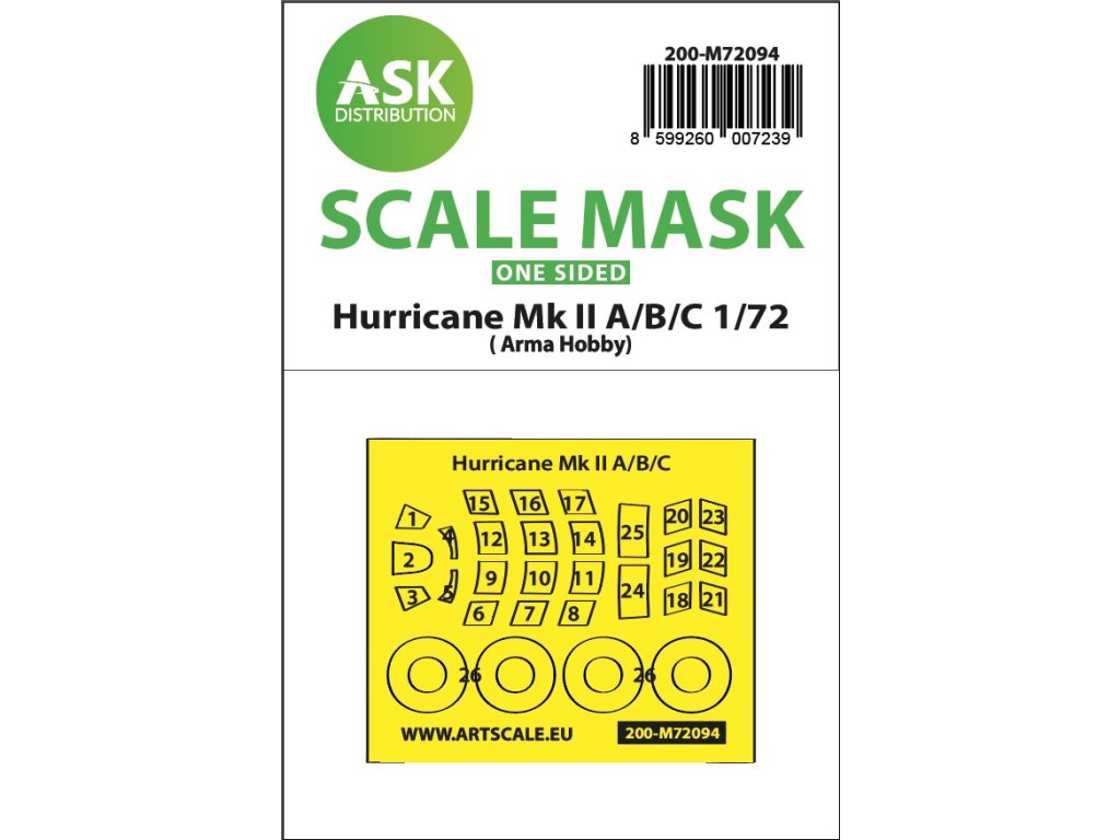 Art Scale Kit Distribution (ASK) produkuje wstępnie wycięte i ponumerowane arkusze maskujące do modeli plastikowych. Maski są przeznaczone głównie do maskowania kabin i kół, ale ułatwiają również maskowanie innych części modelu. Każdy zestaw jest zalecany dla konkretnego zestawu modelu w odpowiedniej skali, zapewniając maksymalną dokładność i łatwość użycia.