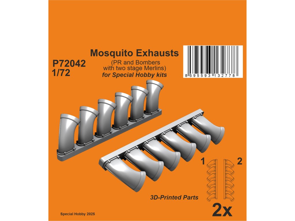 1/72 Mosquito Exhausts (PR and Bombers with dougle stage Merlins)