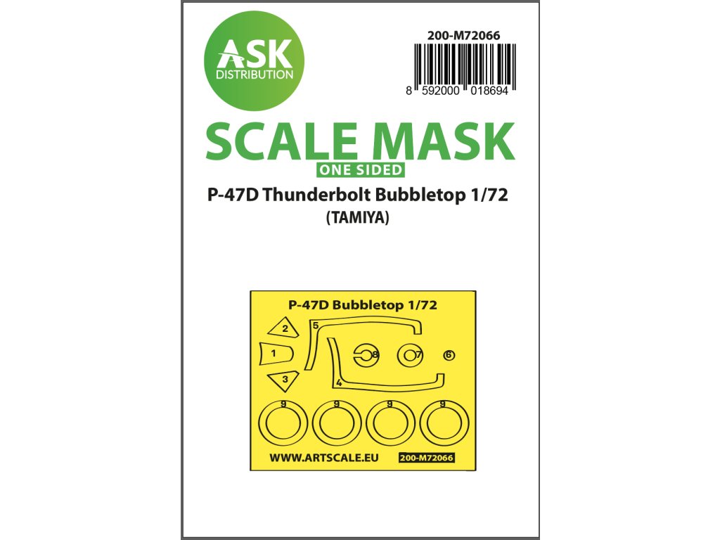 Art Scale Kit Distribution (ASK) produkuje wstępnie wycięte i ponumerowane arkusze maskujące do modeli plastikowych. Maski są przeznaczone głównie do maskowania kabin i kół, ale ułatwiają również maskowanie innych części modelu. Każdy zestaw jest zalecany dla konkretnego zestawu modelu w odpowiedniej skali, zapewniając maksymalną dokładność i łatwość użycia.