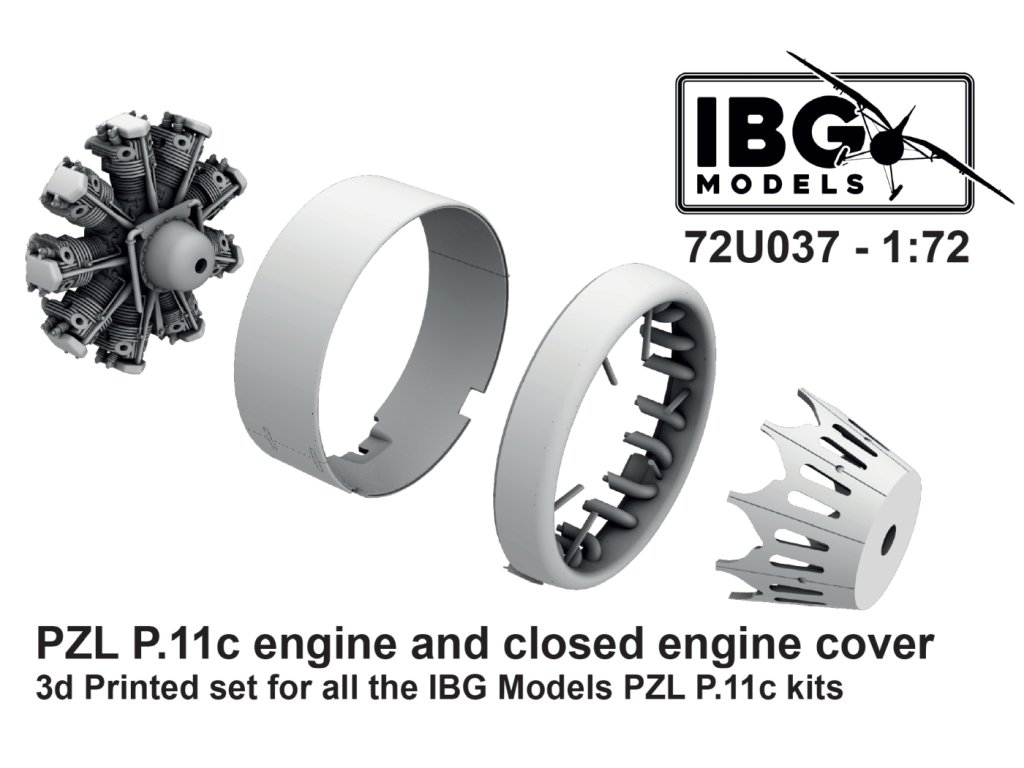 IBG 1/72 PZL P.11c Engine and Closed Engine Cove to wydrukowany w 3D zestaw silnika i osłony silnika w konfiguracji zamkniętej dla polskiego myśliwca PZL P.11c w skali 1/72.