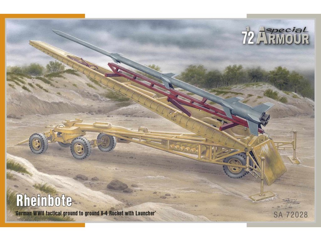 Ten wykonany w skali 1/72 zestaw niemieckiej czterostopniowej rakiety taktycznej Rheinbote (V-4) oferuje modelarzom wyjątkową okazję do zbudowania wcześniej nieprodukowanego plastikowego modelu tej historycznie ważnej broni.możliwość zbudowania wcześniej nieprodukowanego plastikowego modelu tej historycznie ważnej broni z czasów II wojny światowej.
