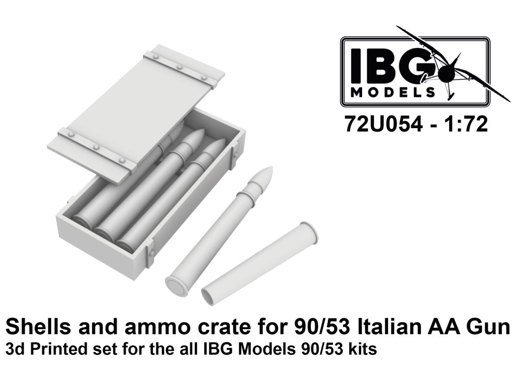 Zestaw IBG w skali 1/72 zawiera realistycznie odwzorowane pociski artyleryjskie i skrzynie, zaprojektowane jako uzupełnienie 90/53. Części są wykonane z wysokim poziomem szczegółowości, dzięki czemu modelarze mogą wzbogacić dioramy o autentyczne elementy obsługi broni i tylnego zabezpieczenia.