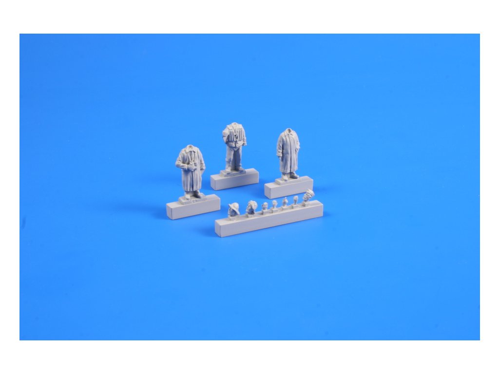 Żywiczne figurki zaprojektowane jako uzupełnienie plastikowych modeli i dioram. Mają realistyczne proporcje i naturalne pozy. Należy je skleić odpowiednim klejem do żywicy, a przed malowaniem zalecamy oczyszczenie powierzchni i nałożenie podkładu. Są świetnym dodatkiem do każdego modelu lub dioramy.