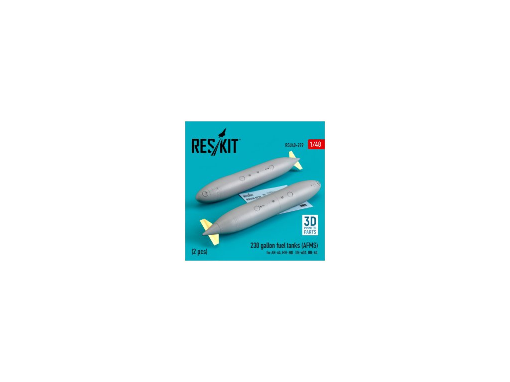 230 gallon fuel tanks (AFMS) for AH-64, MH-60L, UH-60A, HH-60 (2 pcs) (3D Printed) (1/48)