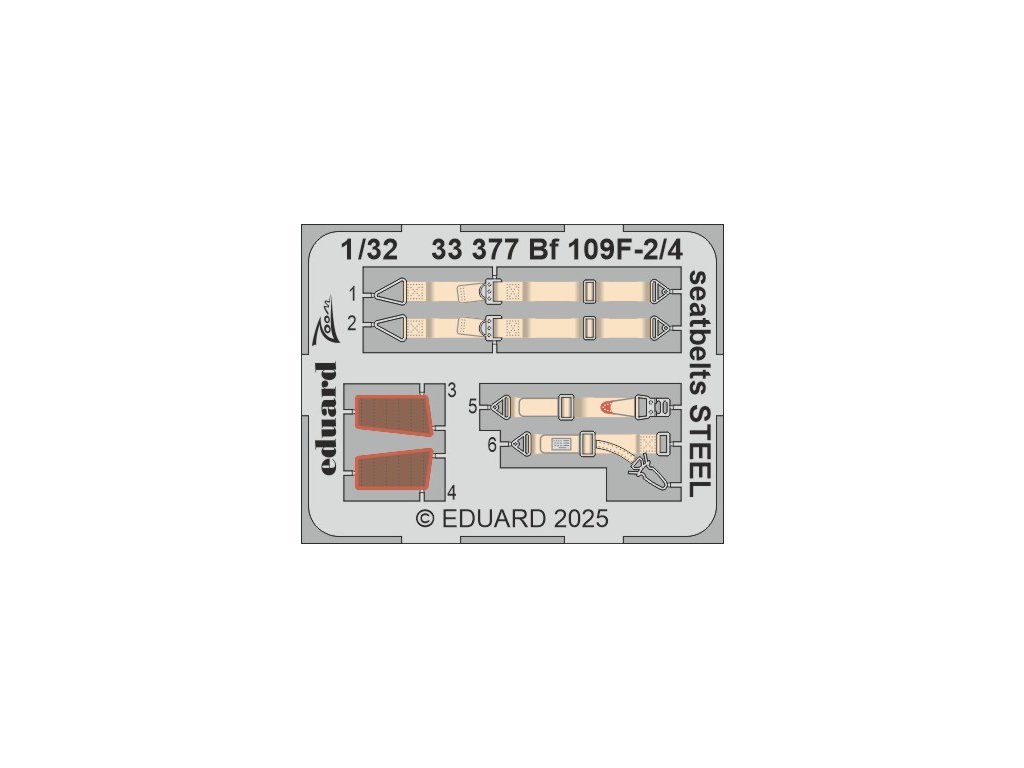 Bf 109F-2/4 seatbelts STEEL 1/32 recommended for HOBBY 2000 / HASEGAWA