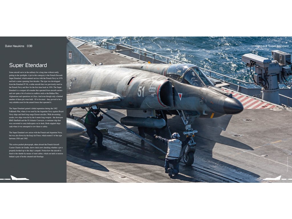 116-stronicowa książka o Dassault Super Etendard. Ten kompaktowy samolot odrzutowy był podstawą lotniskowców francuskiej marynarki wojennej przez cztery dekady. Ta książka daje bardzo szczegółowe spojrzenie na poddźwiękowy, wszechstronny samolot, zarówno w akcji, jak i w szczegółach. Zawiera ponad 250 zdjęć, w tym kokpitu, szczegółów płatowca i konserwacji.