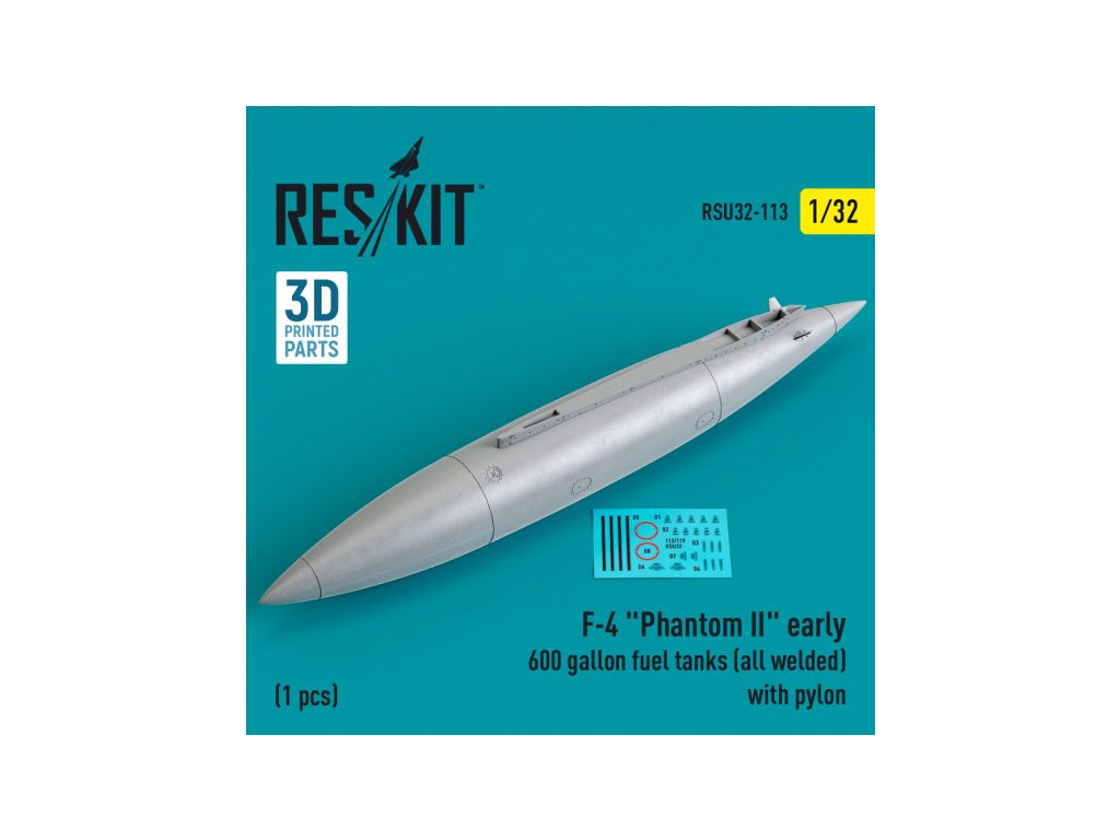 F-4 "Phantom II" early 600 gallon fuel tanks (all welded) with pylon (1 pcs) (3D Printed) (1/32)