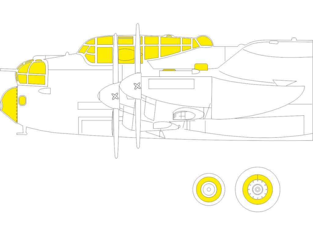 Jednostronna maska samoprzylepna na przezroczyste części i koła podwozia do zestawu Curtiss Tomahawk Mk.II w skali 1/48 firmy Airfix. Numer...