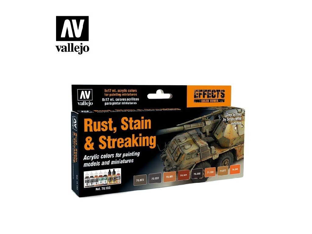 Sada akrylových barev Vallejo Model Color Effects Set 70183 Rust, Stain & Streaking (8) by Scratchmo